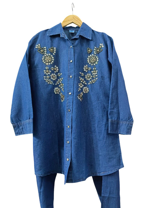 Sky Blue Denim CORD SET with White Thread Embroidery