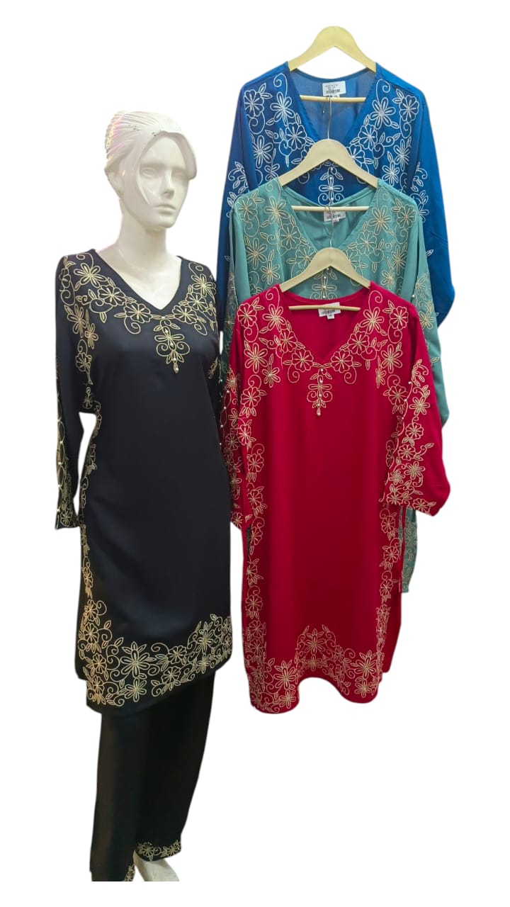 Turn heads with this Black Kurti with Multicolor Abstract Embroidery, a stylish statement piece that combines traditional craftsmanship with contemporary fashion. Made from premium rayon fabric, it offers a smooth, flowy drape that flatters every body shape. The highlight of this kurti is the vibrant abstract embroidery in shades of red, yellow, and green, strategically placed on the chest and sleeves to add a lively pop of color. The straight-fit design, round neckline, and button detailing at the front make it perfect for both work and casual wear. Style it with cigarette pants, leggings, or even jeans for a fusion twist. Whether you’re attending a small festive event or going for a coffee date, this kurti will make sure you stand out effortlessly.